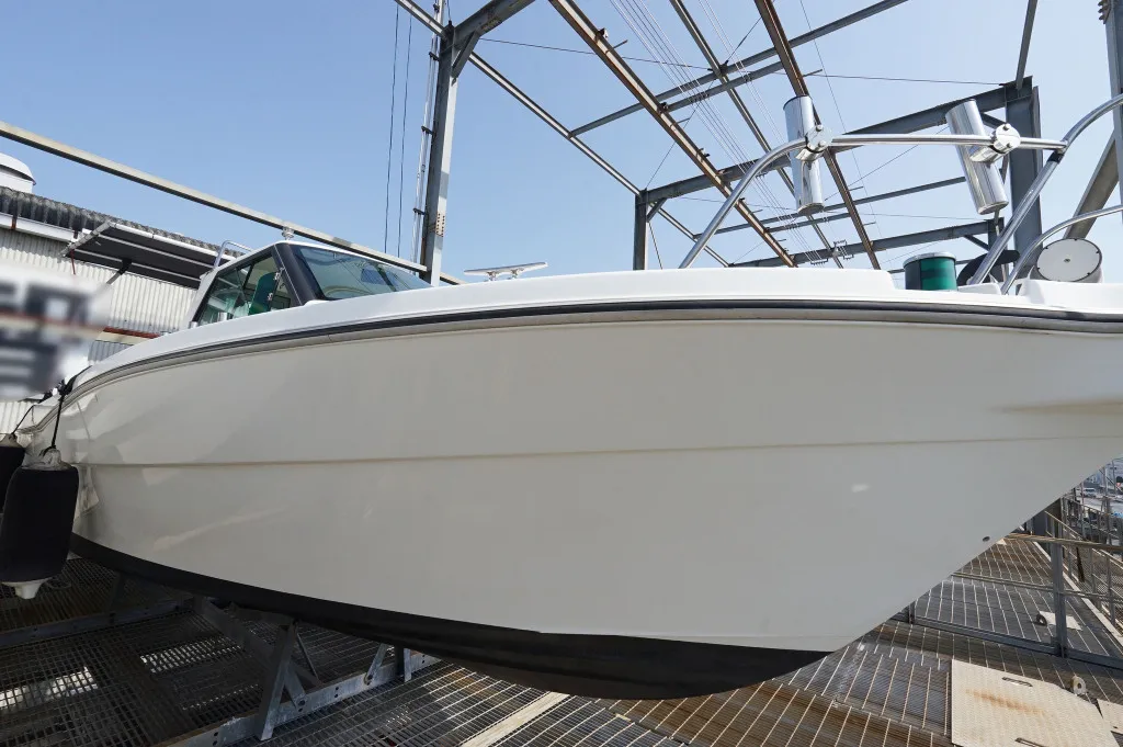 船底塗装はしていますが、陸置保管ですので船底やハル、ガンネルは補修跡もなく良い状態です。