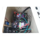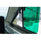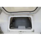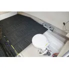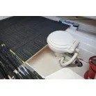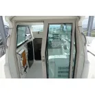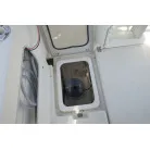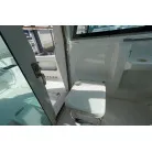 キャビン入口は大きなガレス製の引き戸。操舵席の左下に小さめの室内(物置・トイレスペース)があります。