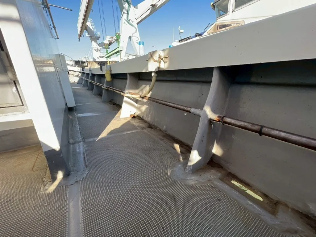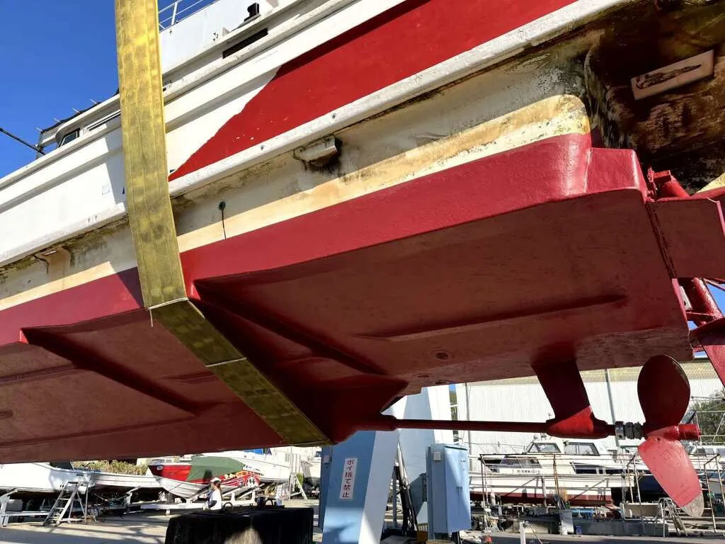 進水は平成4年とかなり前で経年による劣化はありますが、船体はハル、デッキとも大きな目立つようなへこみ傷等はありません。