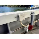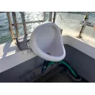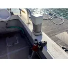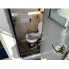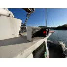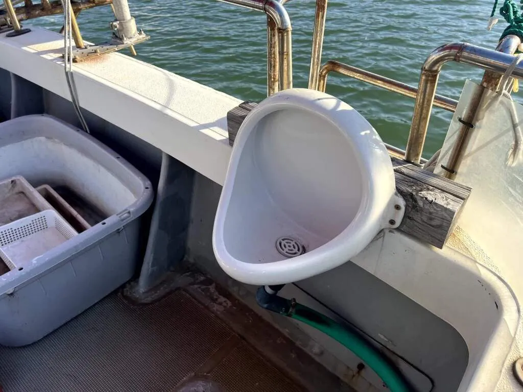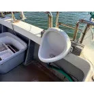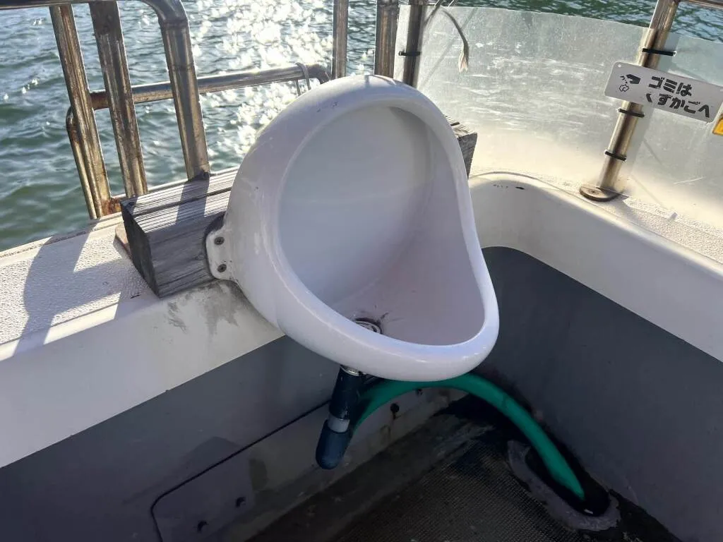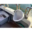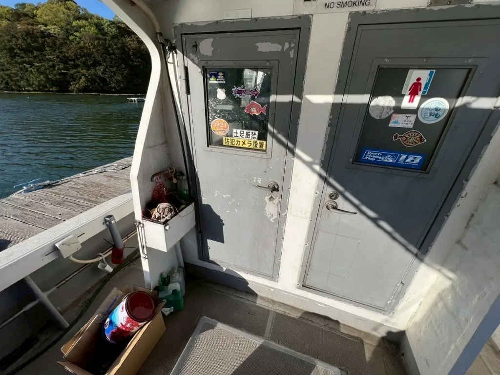 デッキには電動リールの装置が各所に設けられていて、トイレも独立しており、大きなアンカーの巻上げ機も装備されています。