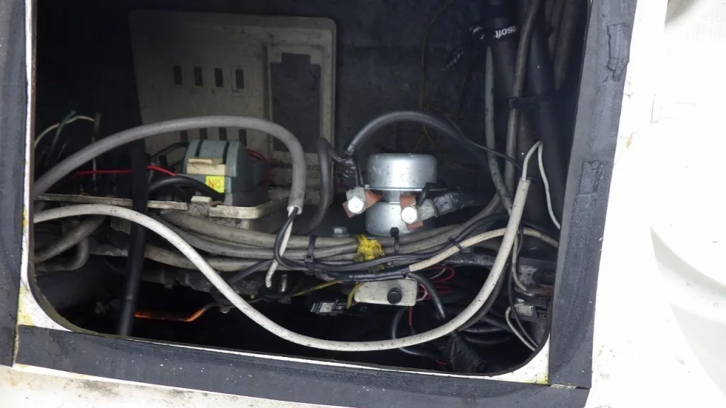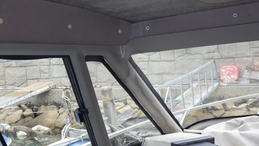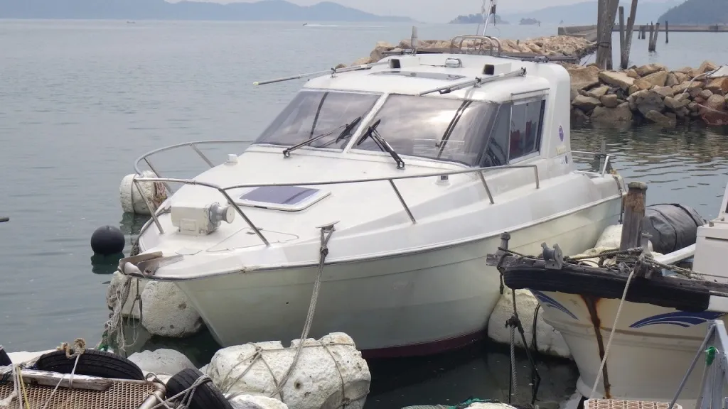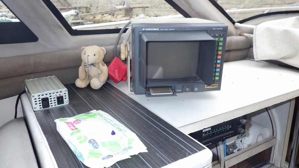 船体はハル、デッキともに致命的な大きな損傷はありませんが、年式なりな古さを否めません。最近ハルの前が桟橋と接触して傷が入り、修復に5万円ぐらいかかるそうです。