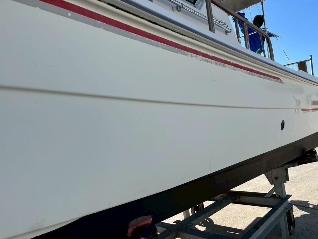 船体、デッキ、ハルともに経年劣化は見受けられますが、大きな傷はありません。(船首の部分のみ塗装の後が見受けられます。)