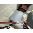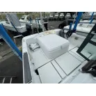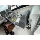 操船席周りはハンドルやメーター類を使いやすくセットしてあります、操船シートもきれいでした。