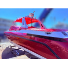 独特のフォルムを持つ船体はスポーティーで細身ですが、意外にもキャビン内は広びとしております。私の担当エリア、愛媛や高知ではあまりお目にかかる機会がない艇です。