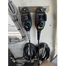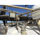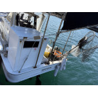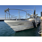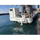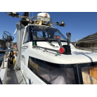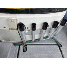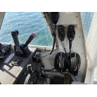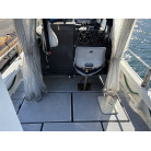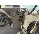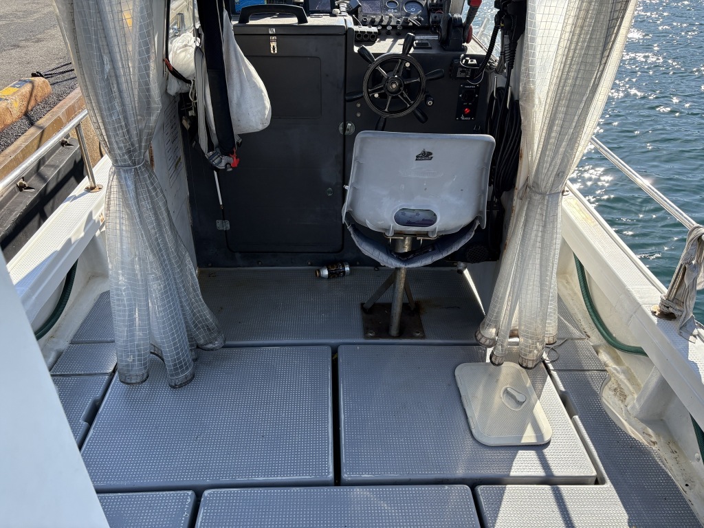 オーナー様、この艇は現在遊漁にて使用されており、装備は充実しております。キャビン上から吊り下げで装備されてるホンデックスHE−773は上下し作業・操船に邪魔にならないように工夫されてます。また、レーダー、リモコン等の操船補助器具も充実。デッキ上、キャビン前でもスロット等コントロールが可能です。