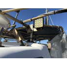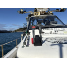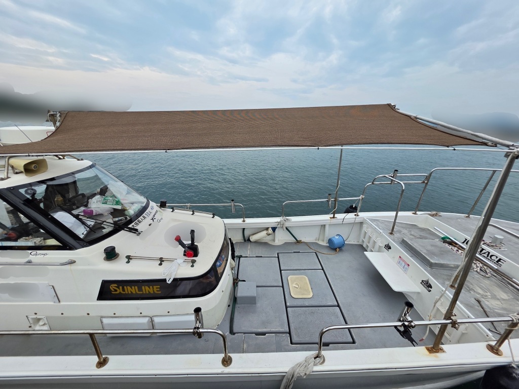 各所にあるライトも明るく、夜間の釣り等に活躍しているようです。(オーナー様提供写真参考)前後にオーニングも完備。雨風を防げるシートもありますが、キャスティングに邪魔にならないようにとデッキ外側より少し内側に張り出しているようです。