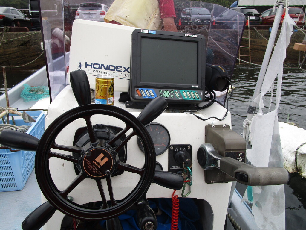 艇は古いですが、エンジンが新しいのが魅力です。センタ-コンソ-ルに油圧ハンドル、