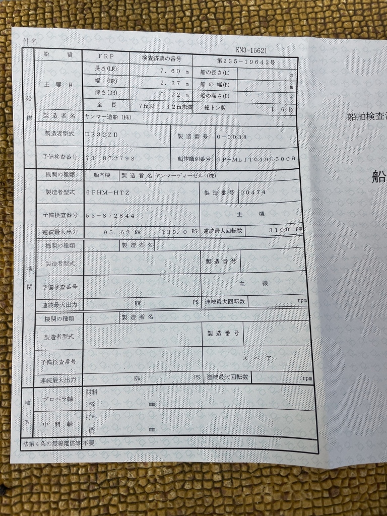 船舶検査は2年近く残っています、エンジンも特に不調な所は無いそうです。