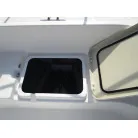 ・操縦席前がキャビンになっています。綺麗な室内で釣り具等が保管されていました。