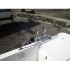 主な装備は① GPS魚探(ホンデックス)②デッキウオッシュ③特注の固定テント④各種ロッドホルダ-他です。