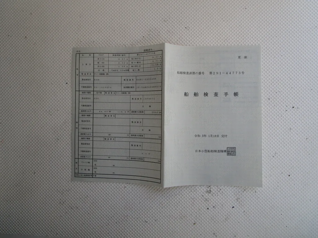 ・船舶検査手帳・船舶検査証書、各種取扱説明書