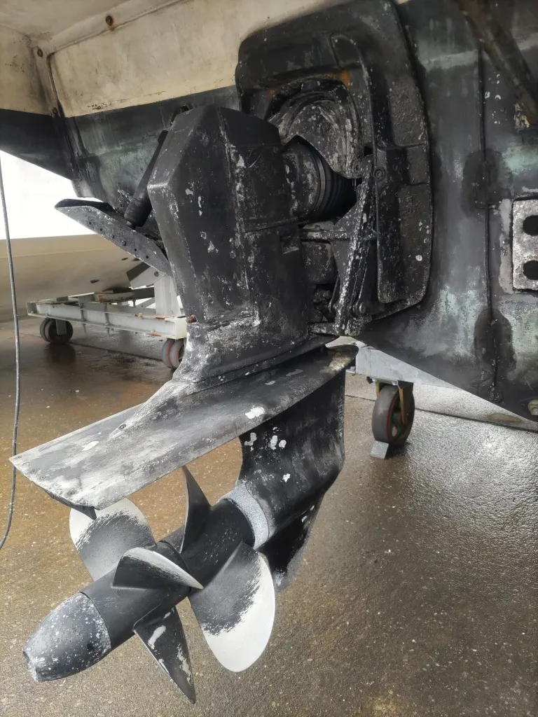 左舷側のドライブユニットはチルトの油圧が抜けてしまうそうで、