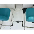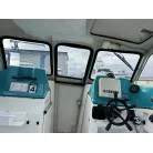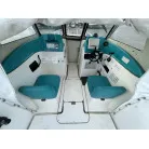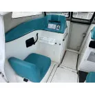 操船席は左右にシートが並ぶタイプで、中央ドアから前デッキへ出られるウォークスルー構造。