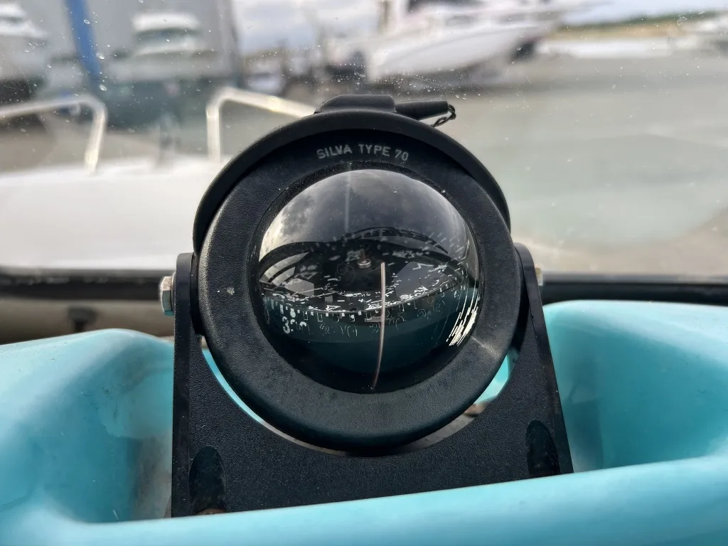 魚探(YAMAHA YFHⅣ084-F)とコンパスを装備し、ハードトップ仕様のためワイパーも備わっています。