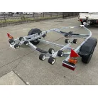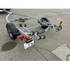 マリーナでの陸上保管や敷地内での移動には適していますが、SRV-20+エンジン合計重量(約860kg)では積載オーバーとなるため、公道走行には使用できません。保管用または整備用台車としてご利用ください。