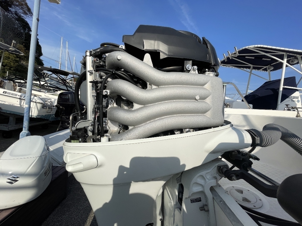 エンジンは、21fィートながらスズキ4ストローク船外機、140馬力をセットしています。
