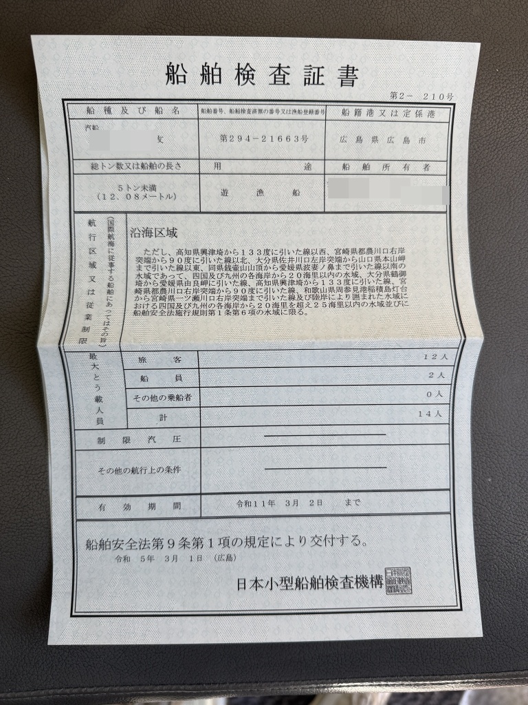 | 定員 | 14人 | 次回船検 | 中間検査(2026年06月02日) |