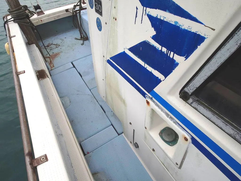 船体は古いですが、ハードな使用の跡がなくレストアベース船としては良い方の個体だと思います。