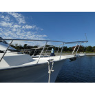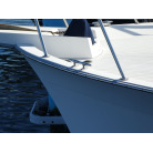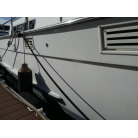 設計はワシントン州ベインブリッジ島の名デザイナー Ed Monk Jr.。丸みを帯びたチャインと長いキールによる 耐航性に優れたセミディスプレースメントハルを採用し、荒天時でも安心感のある走行を実現します。