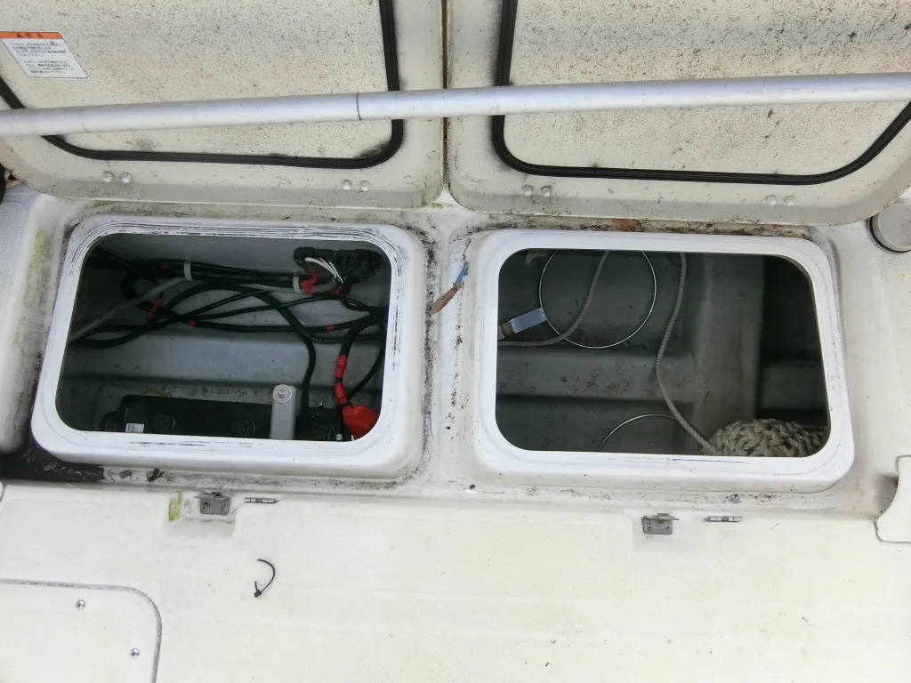 以前海上係留の為、デッキ周りには多少汚れが見られましたが、FRPの状態も良好でした。