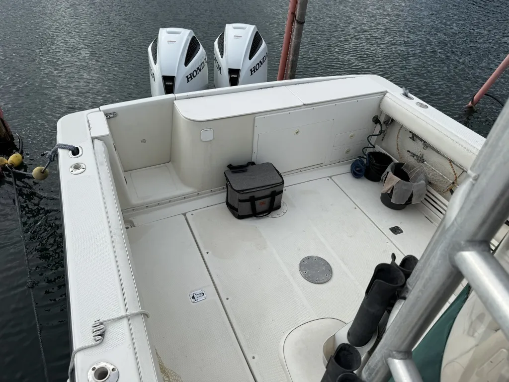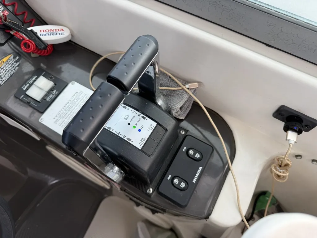 船外機は、ホンダ製250馬力に主機換装済で使用時間もまだまだ少ないです。