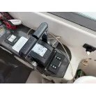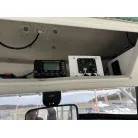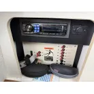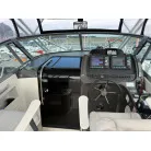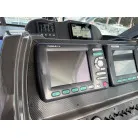 操船席には、標準の計器類の他は、GPS魚探が2台、レーダー(マルチモニター)、トリムタブSW、国際VHSなどが装備されています。