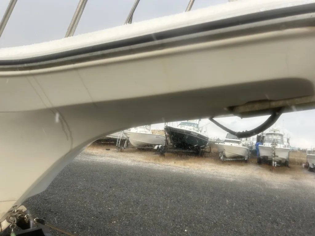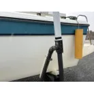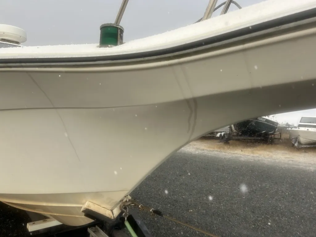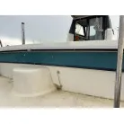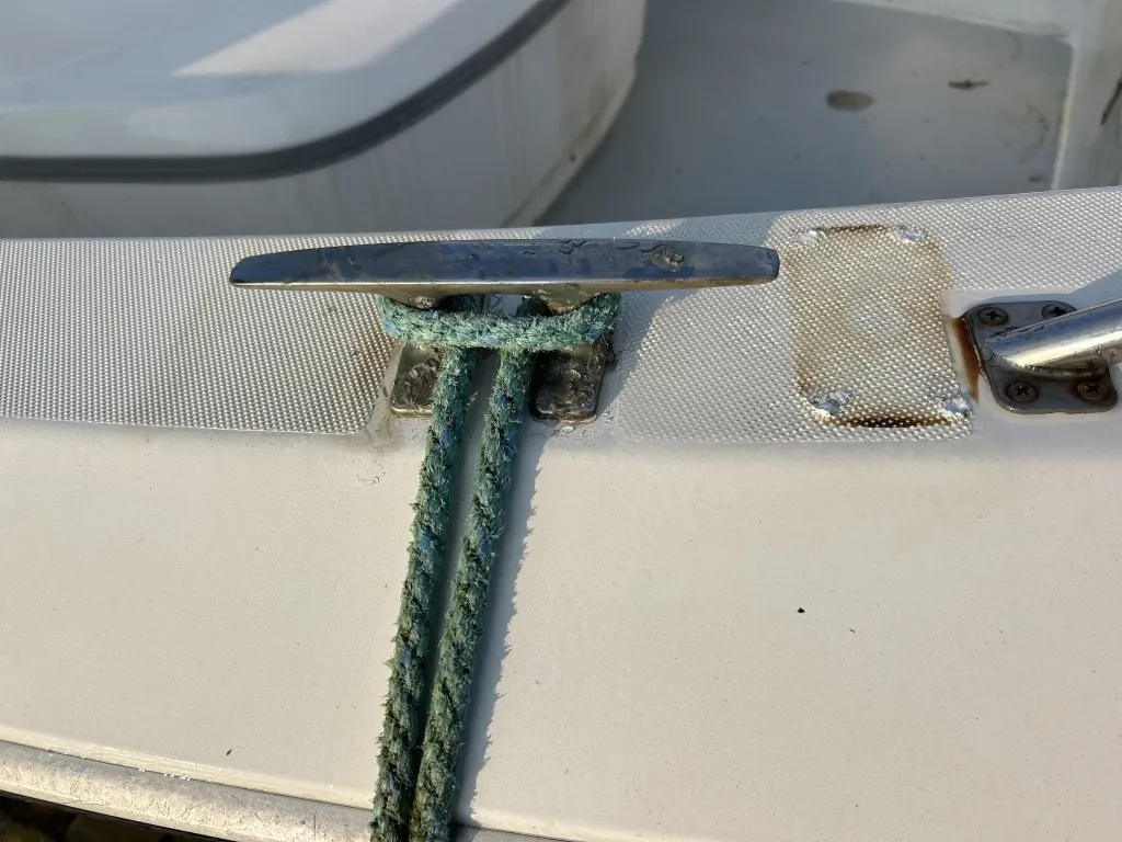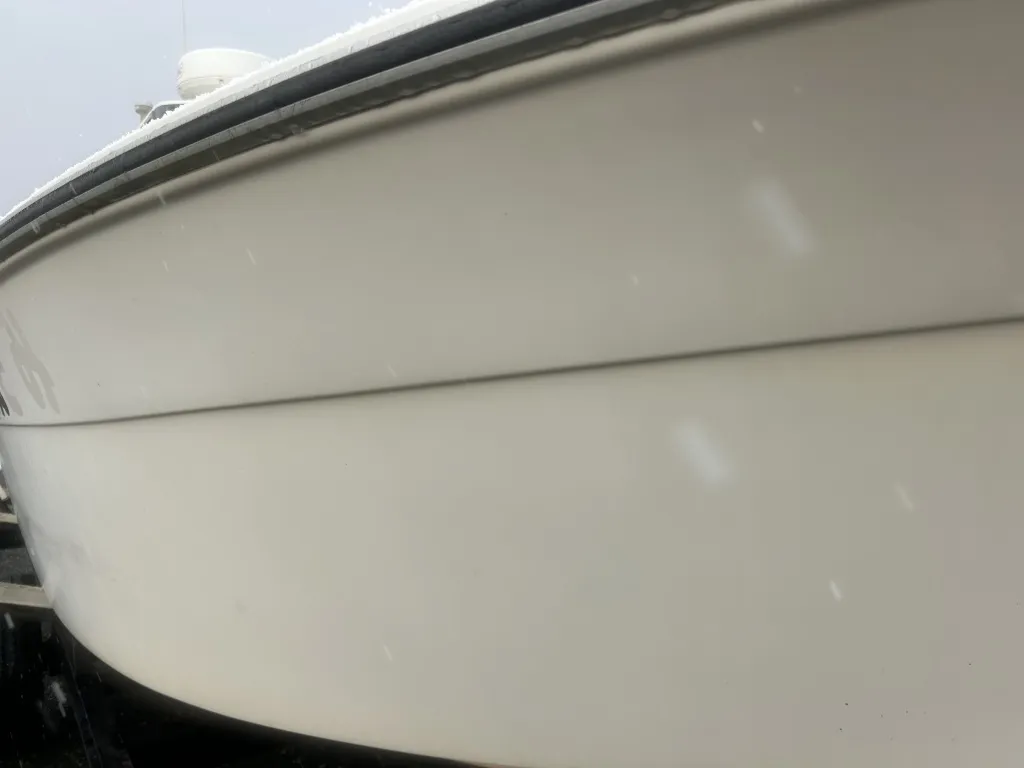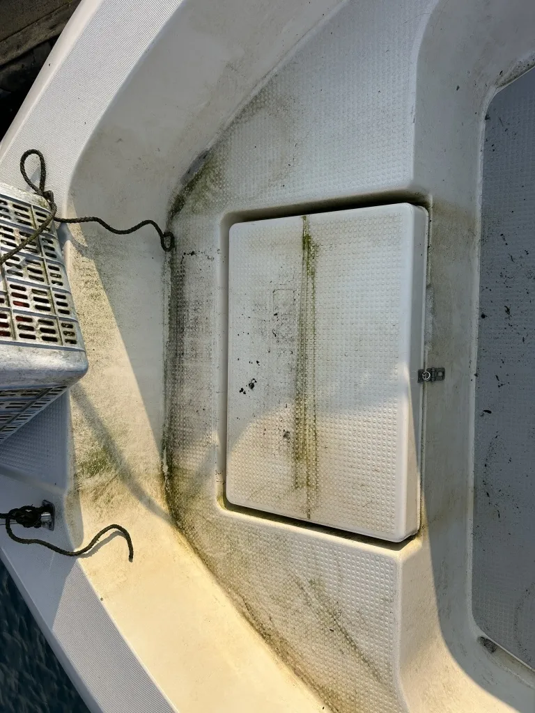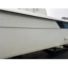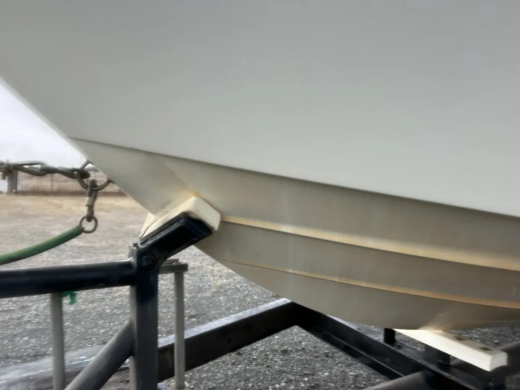 左右舷側面には、係留時にポンツーンの防舷材と擦れた跡が確認できます。