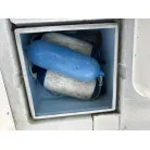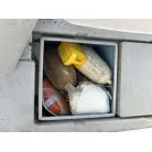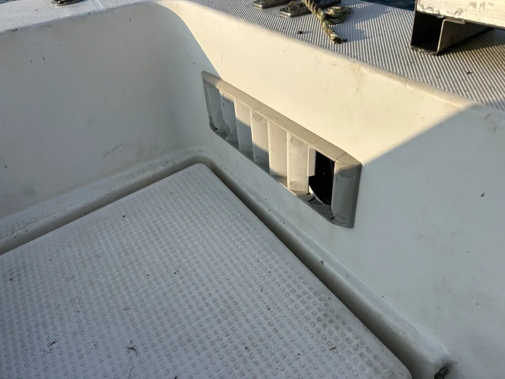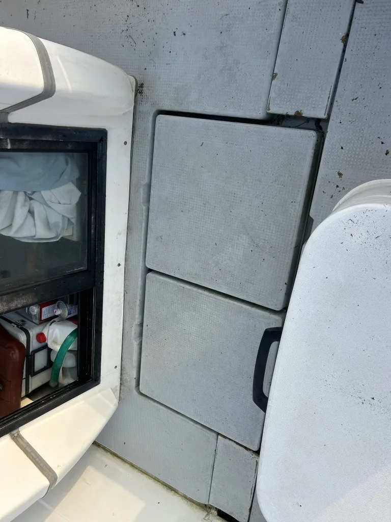 右舷側ハッチ下にはビルジポンプが設置されていますが、