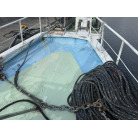 前後のデッキには、集魚灯や巻上機が設置されていますので、これから漁業を始めようと検討中の方、乗換えをご検討される方にとっては、そのまま使用できる他にも様々な漁や作業艇としても活躍してくれそうです。
