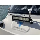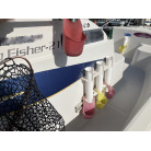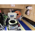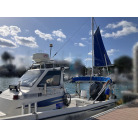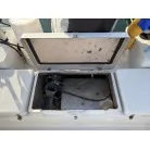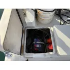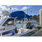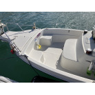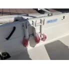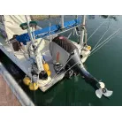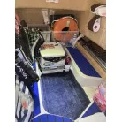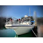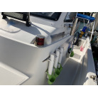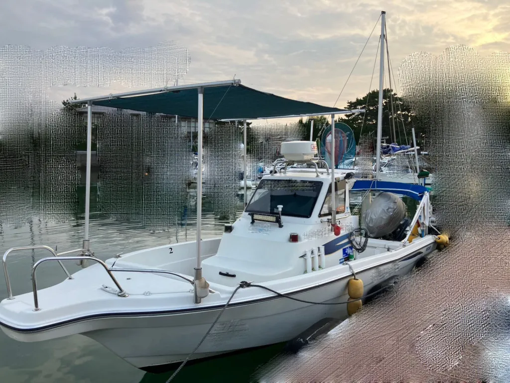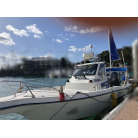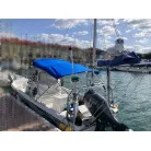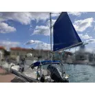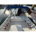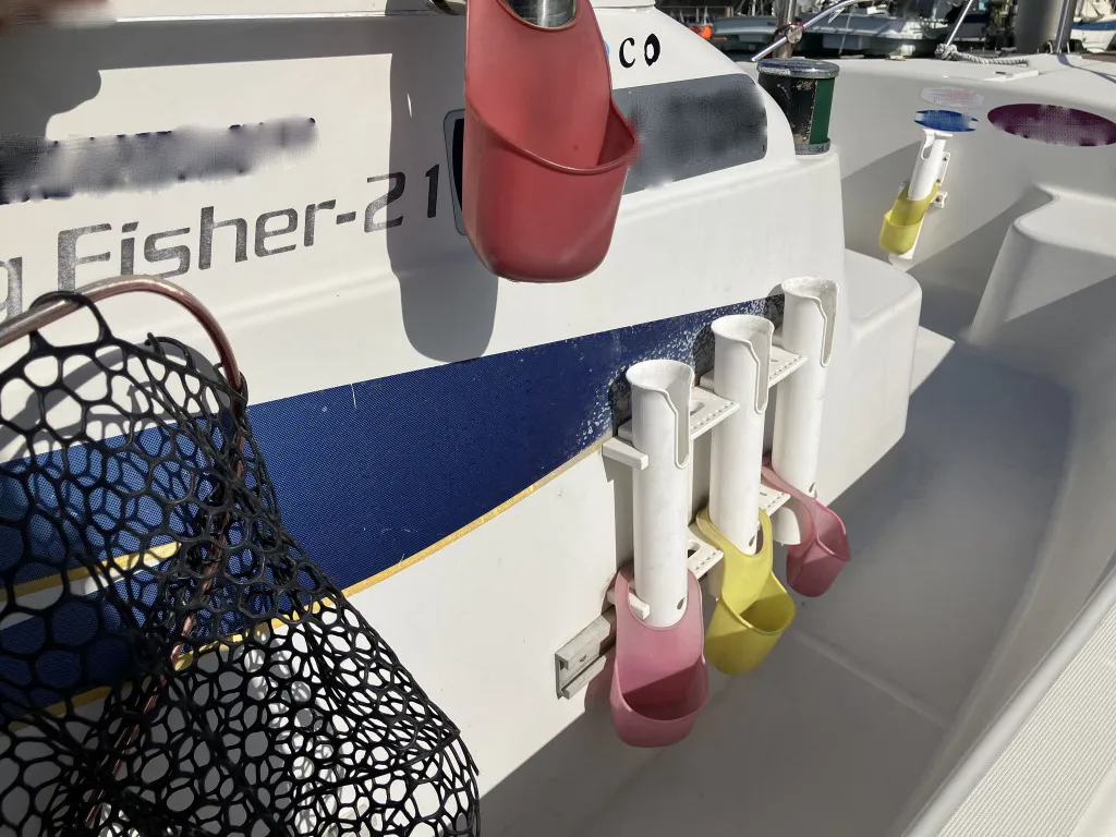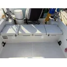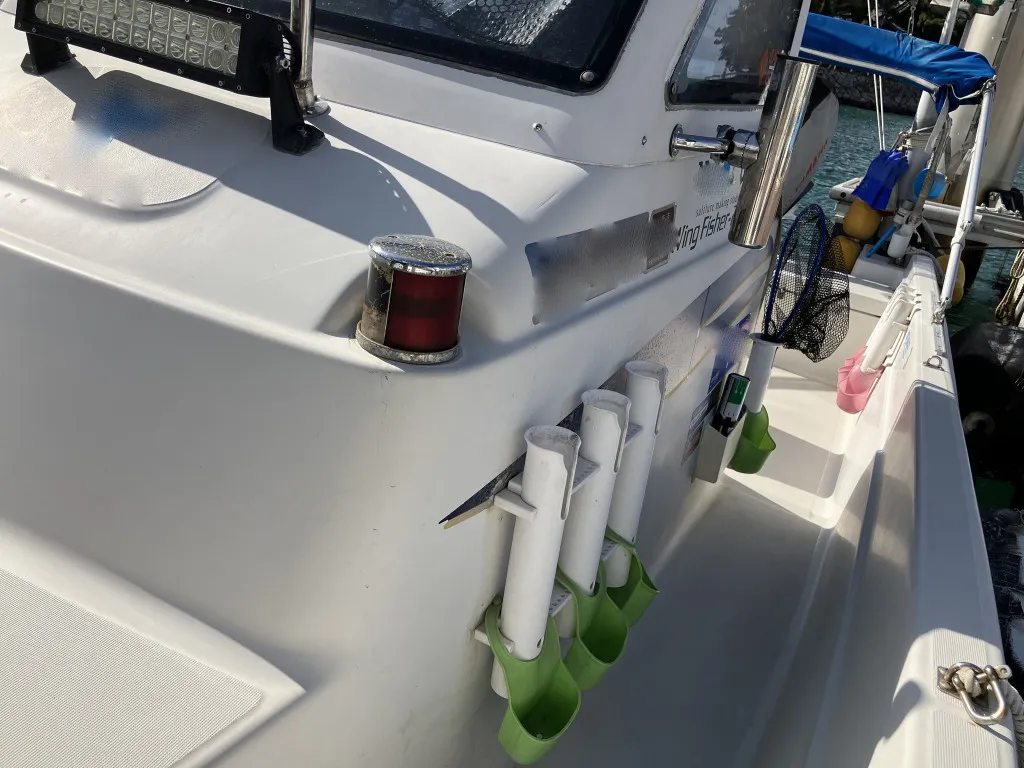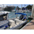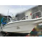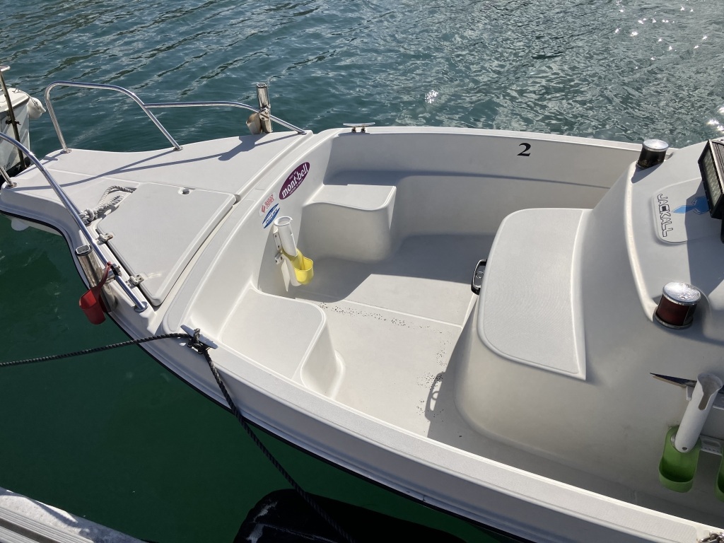 この艇は釣船として、最適なウォークアラウンドでデッキ上を移動しやすく、船首デッキ上のオーニング、船尾にも折りたたみ式が確認できます。船尾には船外機がついておりますが、うまく交わしてスパンカーも装備しているようです。2、3人程度で、多少の小雨程度なら十分楽しめそうです。遊漁船なので、魚探等ある程度の装備も一式揃ってるとのことです。