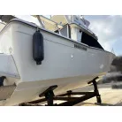 昔からよく見るこの艇。大きすぎず、小さくもなく、よく言えばちょうどいいサイズ。ドライブ艇の2機掛けクルーザータイプ。やはりメンテナンスはが大変だと思いますが、このサイズで2期掛けなので安心感はあるかもしれません。