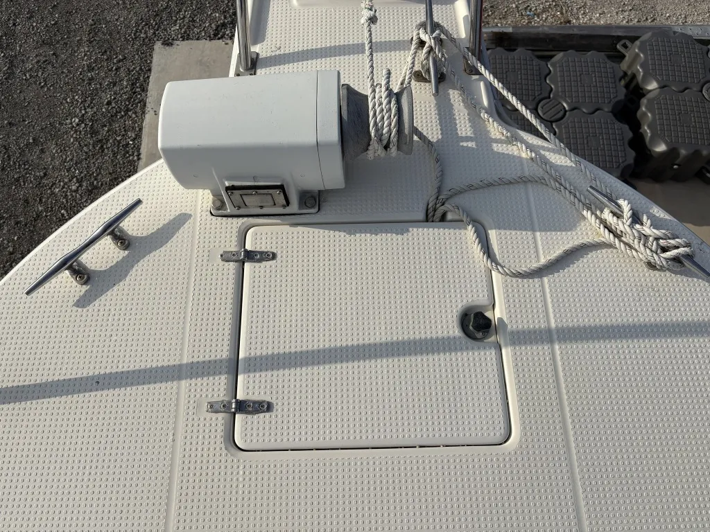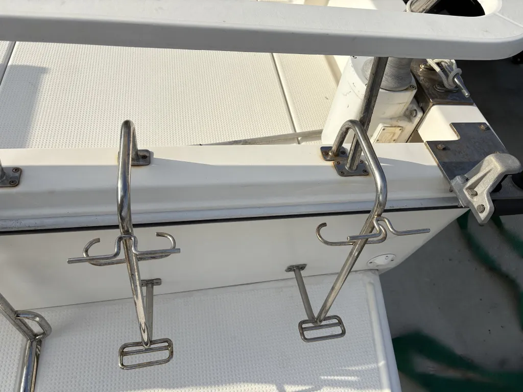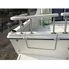 キャビンがあるのに、後部デッキは比較的大きめだと思います。サイドでの釣りはできませんが、きっちり使えるなら、船尾、船首での釣りを楽しめるのかもしれません。
