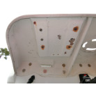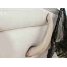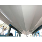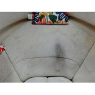 白い事もあり汚れやシミは目立ちますが、大きな切れや解れは見られず船齢からすれば良好だと思います。