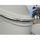 ・バウデッキは船首に向かって若干の下がり傾斜になるデザインですが、しっかりしたレールの装備があり安心感がありました。