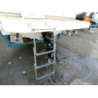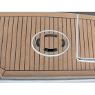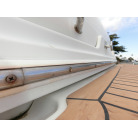 ・スイミングステップにはラダーが収納され、サンディングもオイル塗布の必要もなく足元が熱くならない船舶用チーク調床材を施工済みのため、滑りにくく安心感があります。