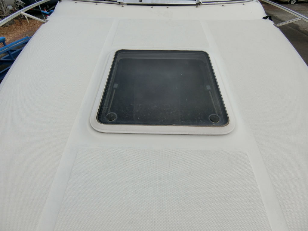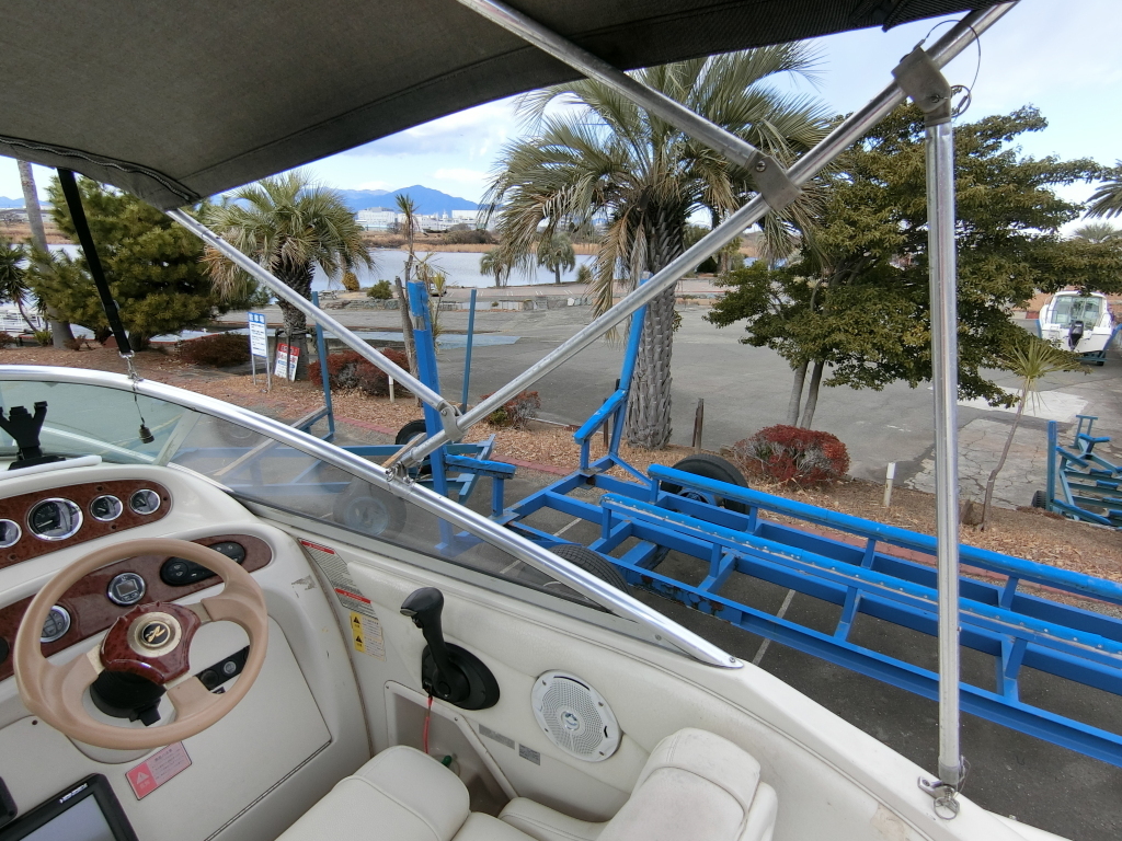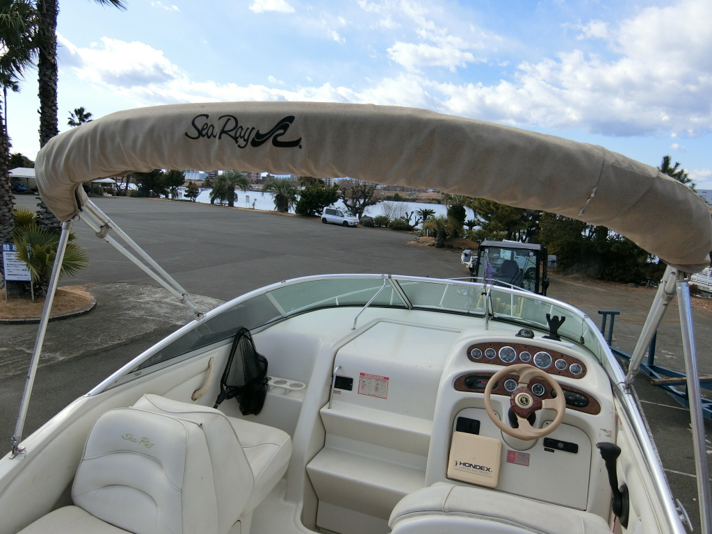 ・操船席前窓からアフトデッキにかけて、カバーを掛けて保管されているため、汚れや紫外線によりう劣化は抑えられていると感じました。