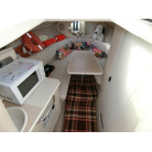 ・船室内は左舷側にギャレー、右舷側が個室トイレ、サロンスペースになります。