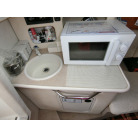 ギャレーにはシンクと電子レンジが設置され、電子レンジはポータブル電源にて使用されているそうです。
