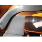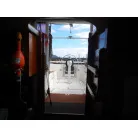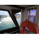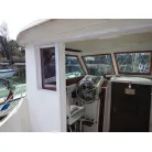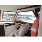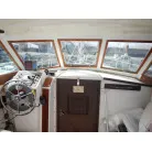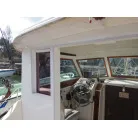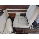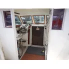 操船は、キャビン内でボートの様にシートに座り操船します。