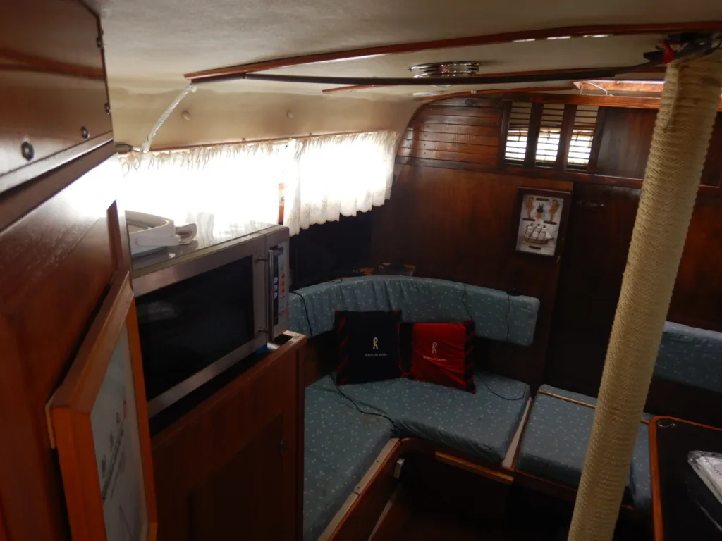 対面シート、ギャレー、マリントイレ等が備わり、マリーナステイも可能です。