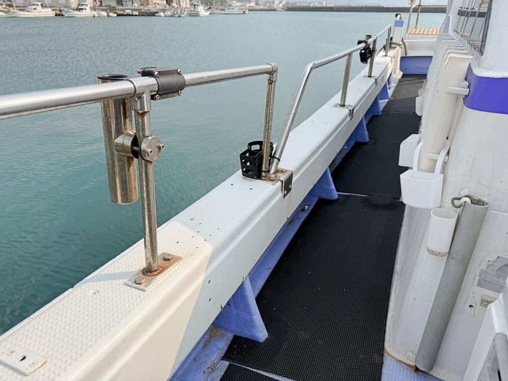 バウデッキにはレールが取り付けられ、アフトデッキにも釣り座を作られていますのでさまざまな釣りにも対応できると思います。