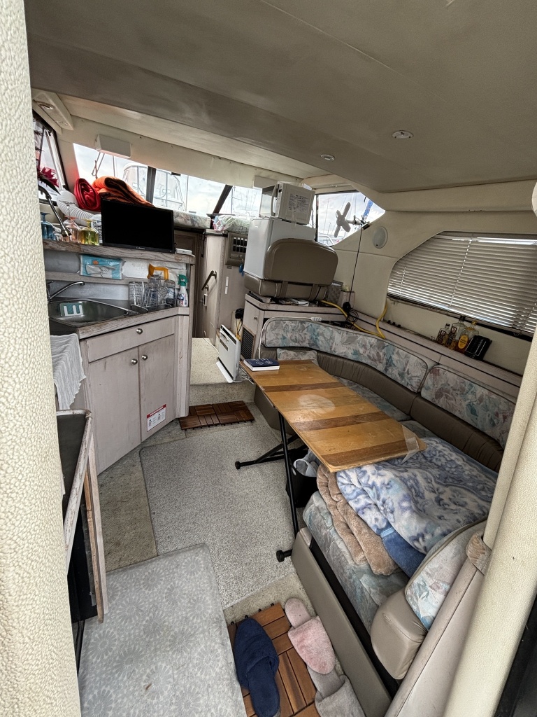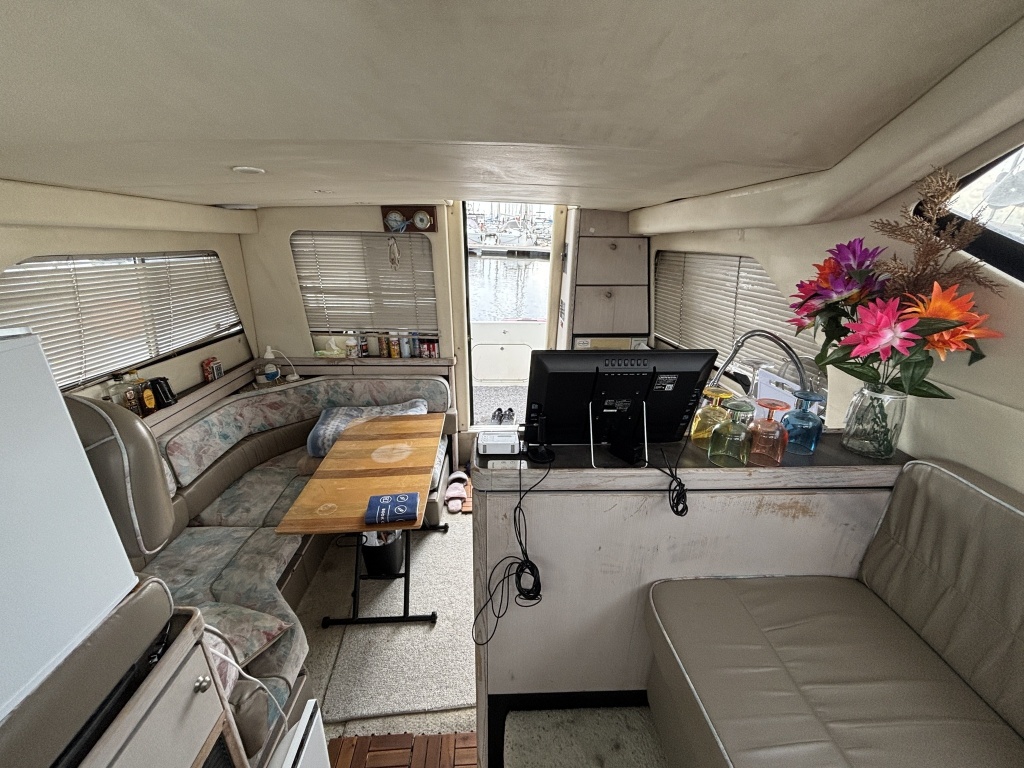 現在は再度係留保管されており、現オーナー様により宿泊用途として使用されておりますが、上記浸水の影響により船内各所ならびにエンジン・電装系統には浸水暦がございます。