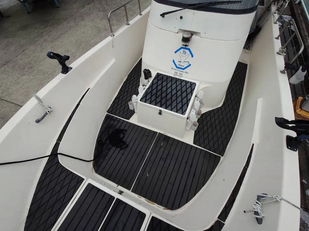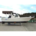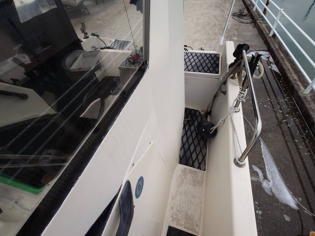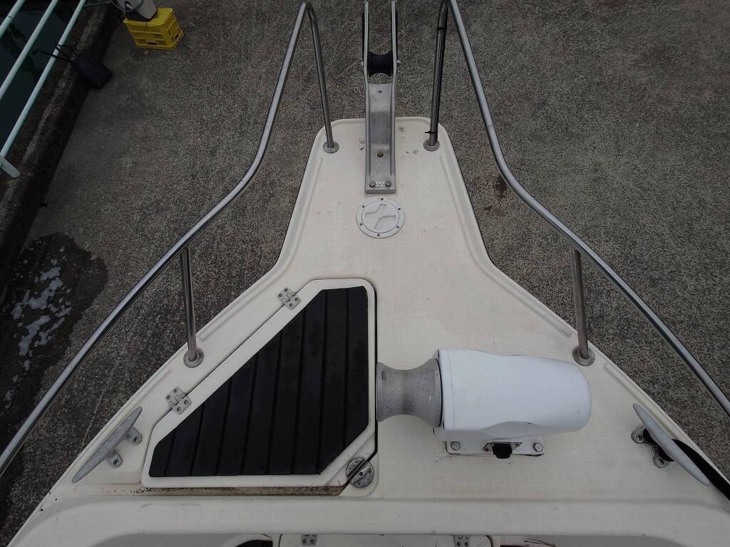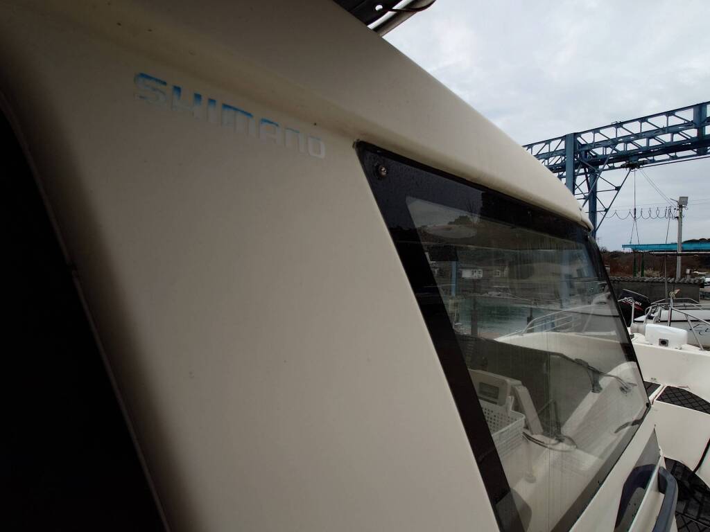 スタイリッシュなデザインの船で船齢を感じさせません。 トイレも100V電源も付いているので色々と安心です。