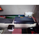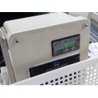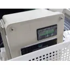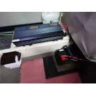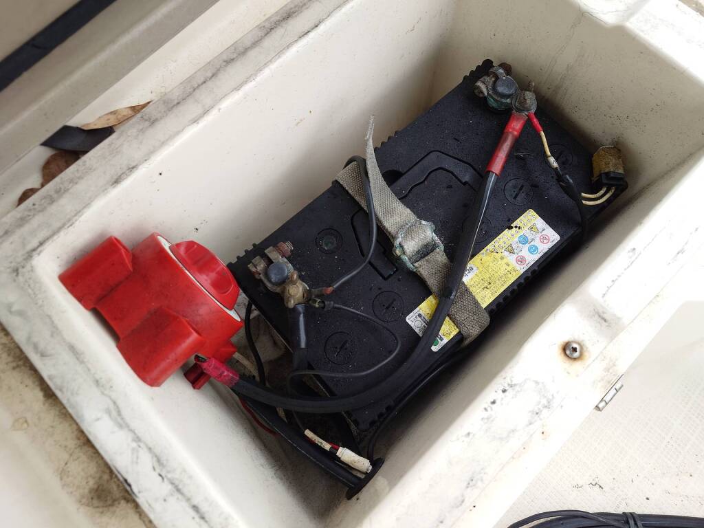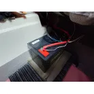 2バッテリー化されており、ソーラーの発電電力が12Ⅴバッテリーに充電され、そこからインバーターで交流100Vに変換されています。魚探もこちらの12Vから電源が取られており、エンジン再始動でも電源は落ちません。