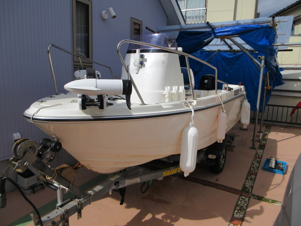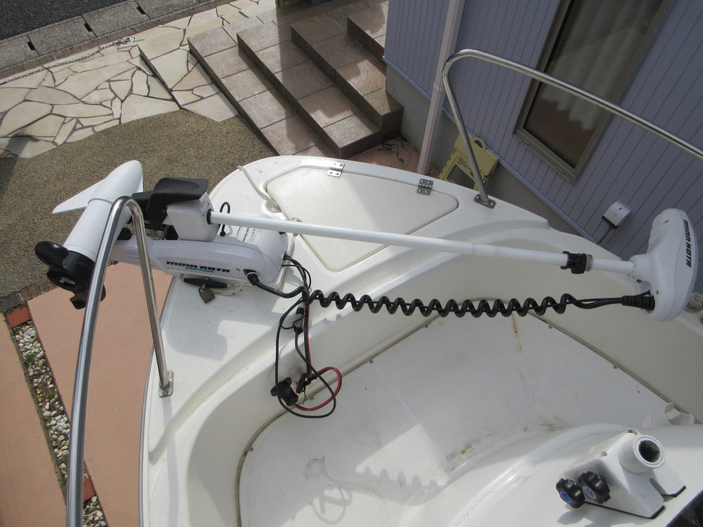 船首のバウモーター(MINN KOTA)はオーナーさんが船の購入時に新品を装備されたそうです。