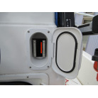 後部の収納庫は右舷側にバッテリー、左舷側に燃料タンクが収納されております。