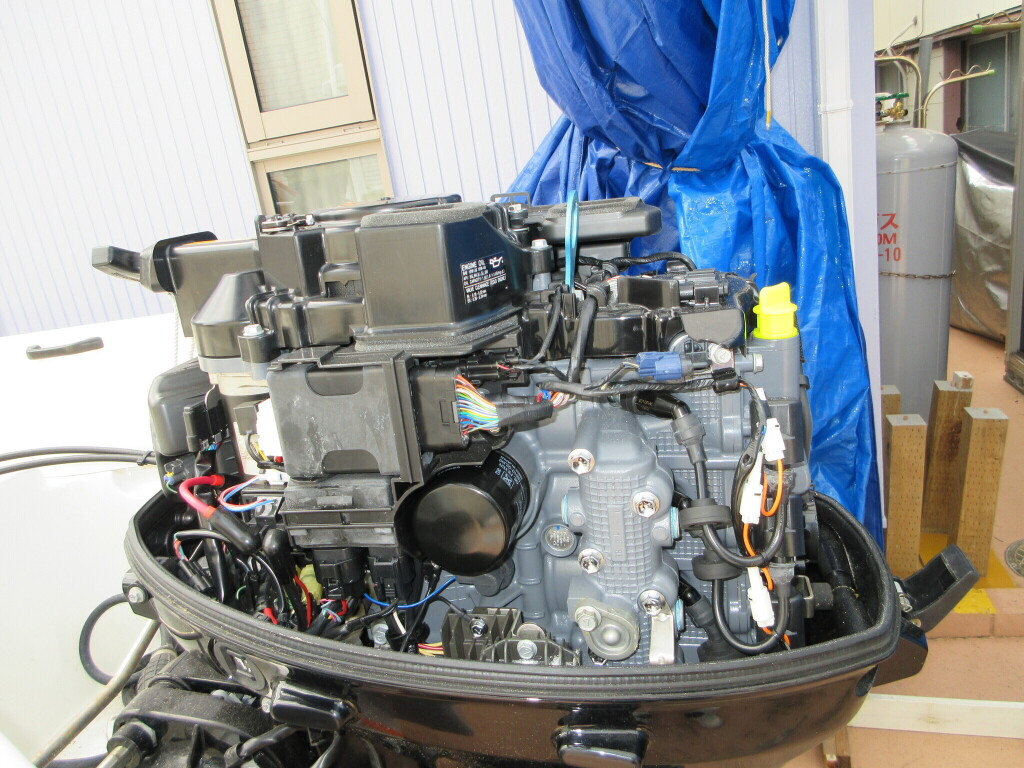 このエンジンはオーナーさんが船を購入された平成30年に新品エンジンに換装されたものだそうです。