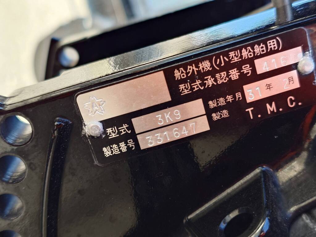 | 船検証記載馬力 | 9.8馬力 / 5,500rpm(回転数) | 推進機器種類 | 船外機 |