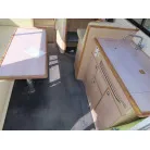 キャビンにはギャレーシンク、個室の電動式マリントイレなども装備されています。