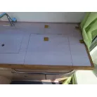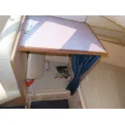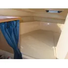 その左舷側にはアンダーバースが装備され、大人1人が横になれるスペースが有ります、釣り道具などの保管場所としても使用可能だと思います。
